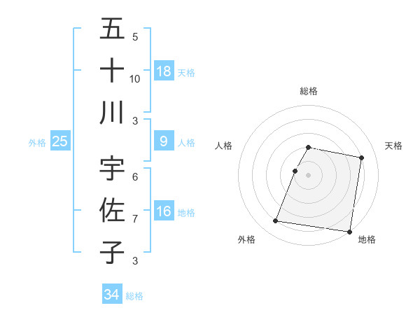五十川 宇佐子さんを姓名の画数から五運を鑑定