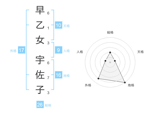 早乙女 宇佐子さんの総格は26画の2点!
