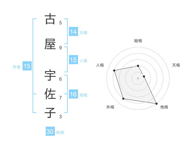 古屋 宇佐子さんを姓名の画数から五運を鑑定