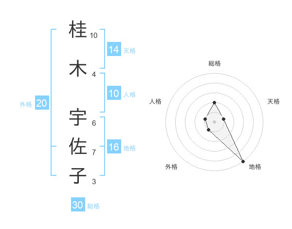 桂木 宇佐子さんを姓名の画数から五運を鑑定
