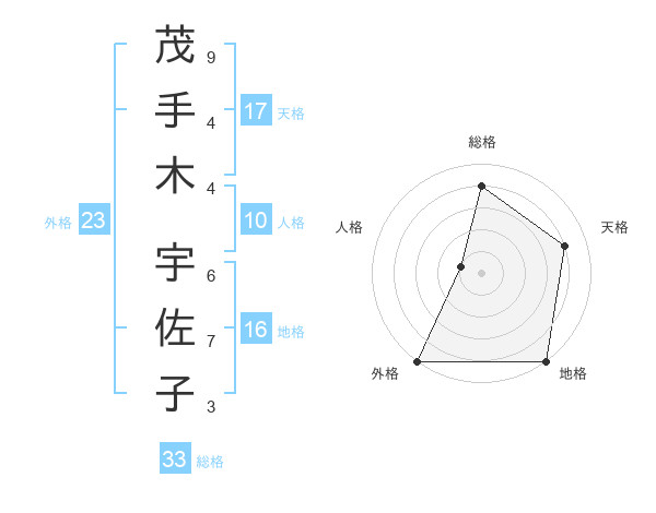 茂手木 宇佐子さんの外格は23画の5点!