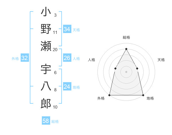 小野瀬 宇八郎さんを姓名の画数から五運を鑑定