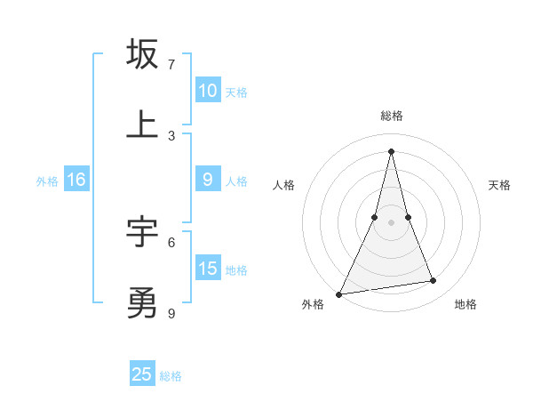 坂上 宇勇さんの総格は25画の4点!