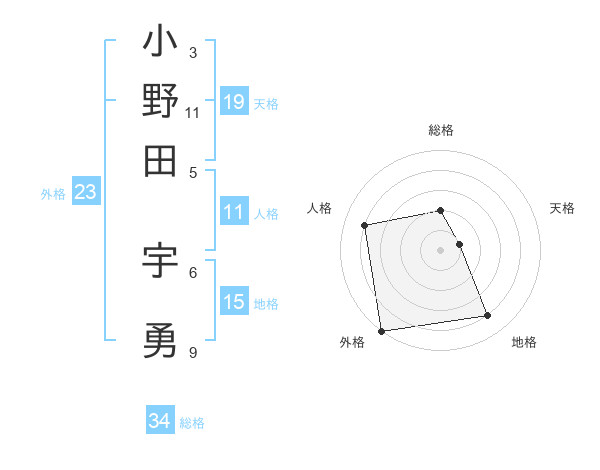 小野田 宇勇さんを姓名の画数から五運を鑑定