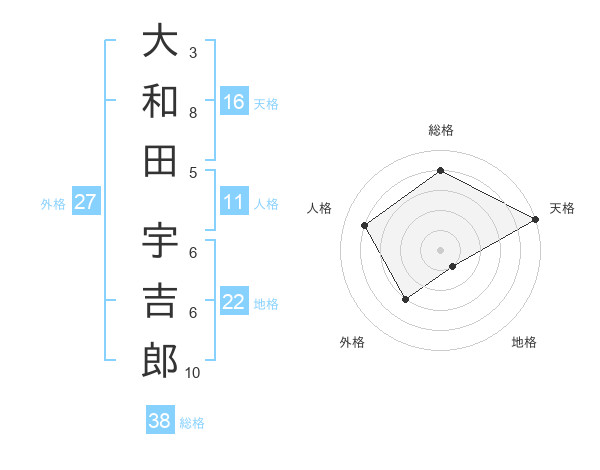 大和田 宇吉郎さんの天格は16画の5点!