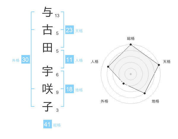 与古田 宇咲子さんの総格は41画の5点!