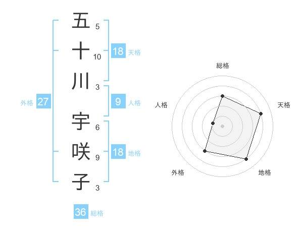 五十川 宇咲子さんを姓名の画数から五運を鑑定