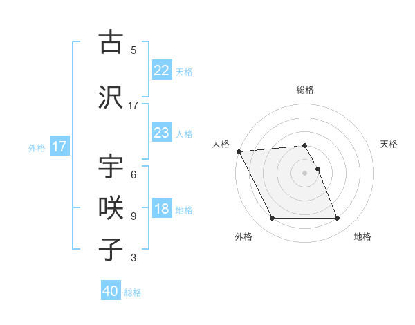 古沢 宇咲子さんの人格は23画の5点!