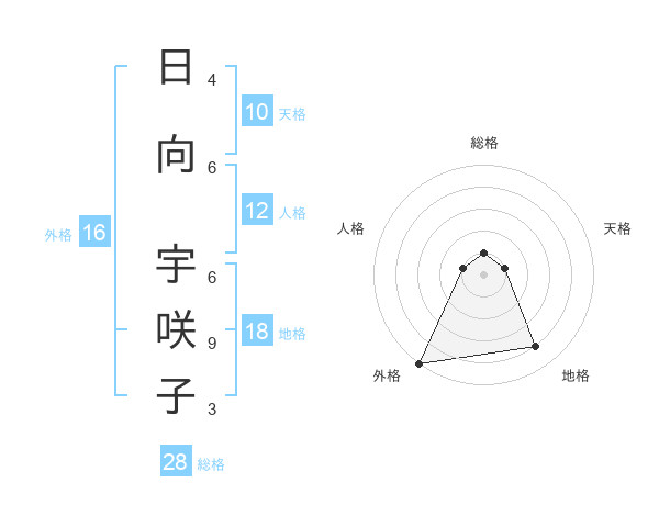 日向 宇咲子さんの外格は16画の5点!