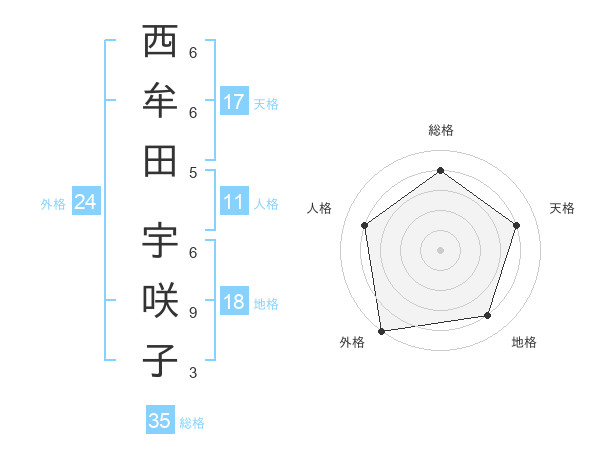 西牟田 宇咲子さんを姓名の画数から五運を鑑定