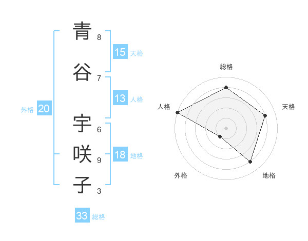 青谷 宇咲子さんを姓名の画数から五運を鑑定
