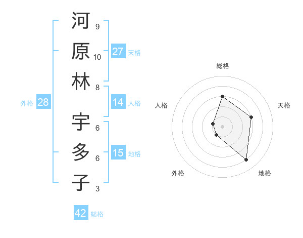 河原林 宇多子さんを姓名の画数から五運を鑑定