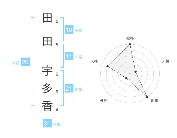 田田 宇多香さんを姓名の画数から五運を鑑定