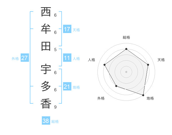 西牟田 宇多香さんの天格は17画の4点!