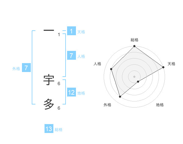 一 宇多さんの総格は13画の5点!
