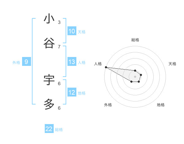 小谷 宇多さんを姓名の画数から五運を鑑定