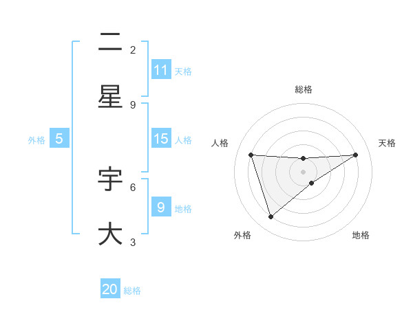 二星 宇大さんの総格は20画の1点!