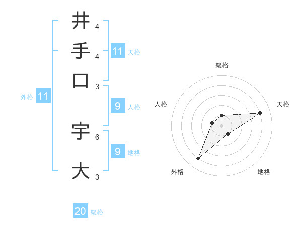 井手口 宇大さんを姓名の画数から五運を鑑定