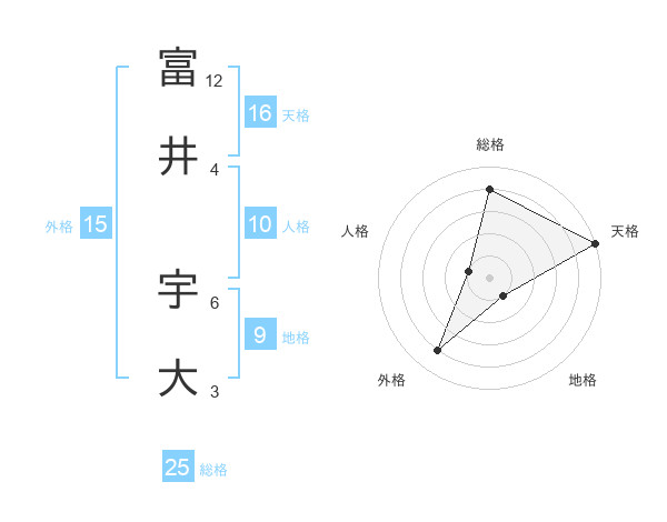 富井 宇大さんの総格は25画の4点!