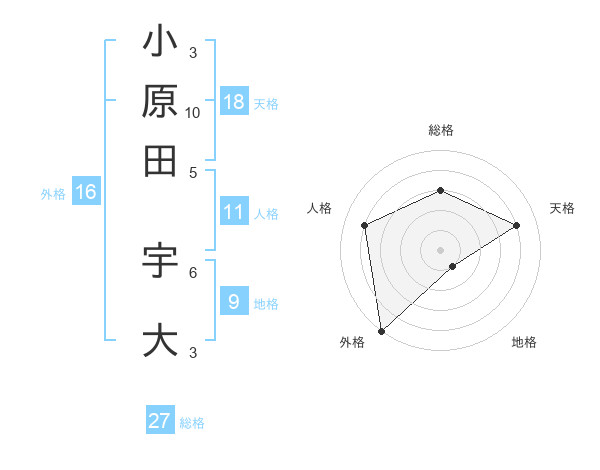 小原田 宇大さんを姓名の画数から五運を鑑定