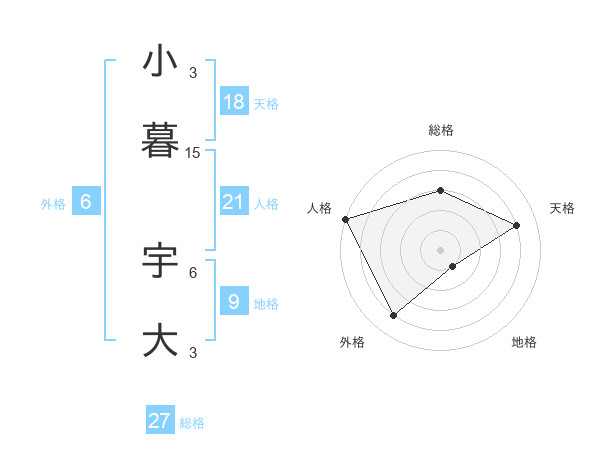 小暮 宇大さんの総格は27画の3点!