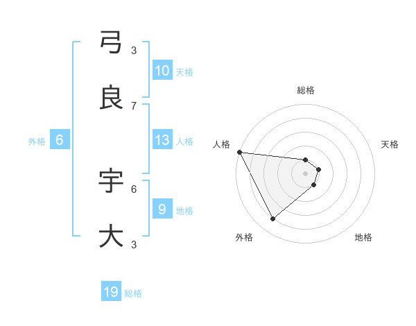 弓良 宇大さんの総格は19画の1点!