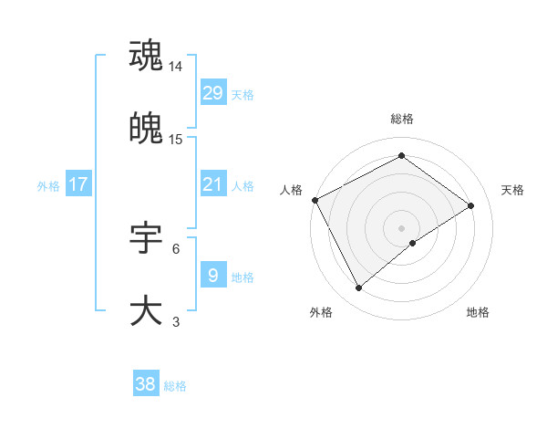 魂魄 宇大さんを姓名の画数から五運を鑑定