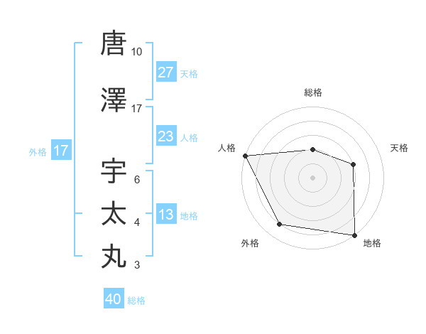 唐澤 宇太丸さんを姓名の画数から五運を鑑定