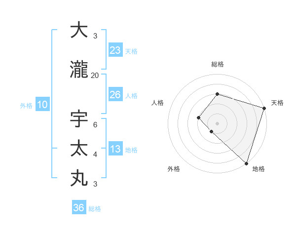 大瀧 宇太丸さんを姓名の画数から五運を鑑定