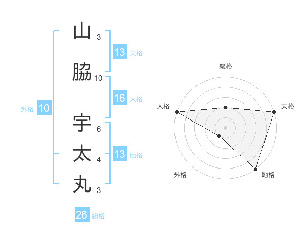 山脇 宇太丸さんの総格は26画の2点!
