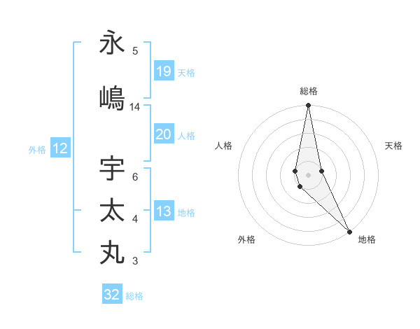 永嶋 宇太丸さんを姓名の画数から五運を鑑定