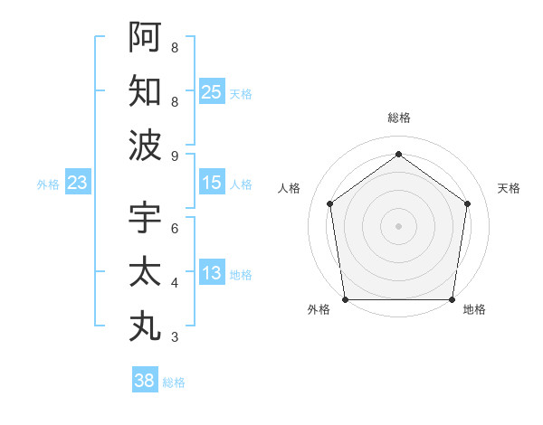 阿知波 宇太丸さんの総格は38画の4点!