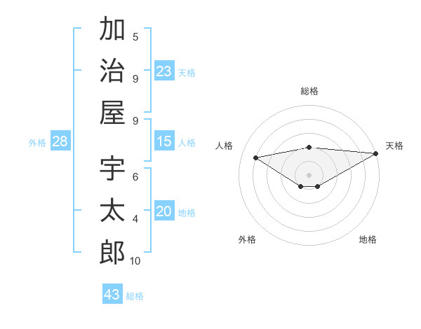 加治屋 宇太郎さんを姓名の画数から五運を鑑定