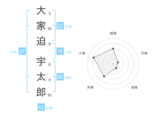 大家迫 宇太郎さんを姓名の画数から五運を鑑定