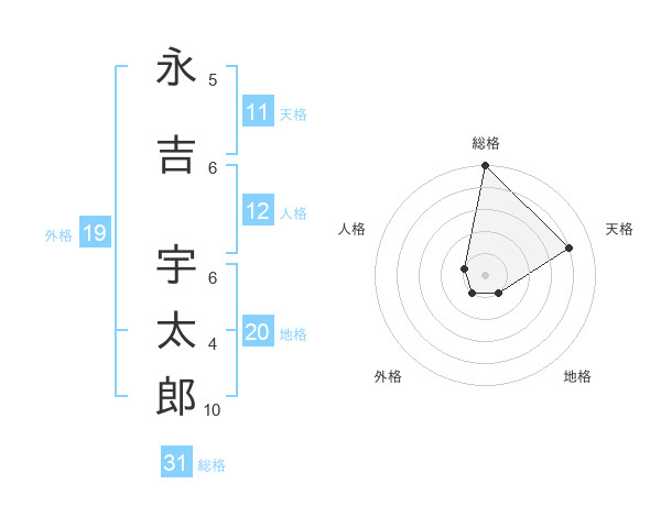永吉 宇太郎さんの総格は31画の5点!