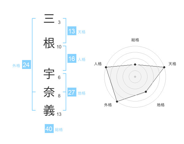 三根 宇奈義さんを姓名の画数から五運を鑑定