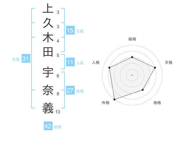 上久木田 宇奈義さんを姓名の画数から五運を鑑定