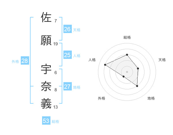 佐願 宇奈義さんを姓名の画数から五運を鑑定
