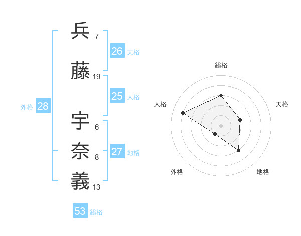 兵藤 宇奈義さんを姓名の画数から五運を鑑定