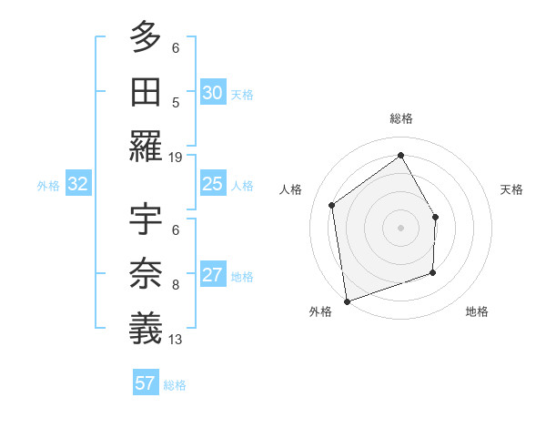 多田羅 宇奈義さんを姓名の画数から五運を鑑定