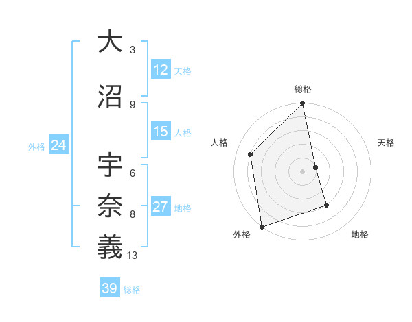 大沼 宇奈義さんを姓名の画数から五運を鑑定