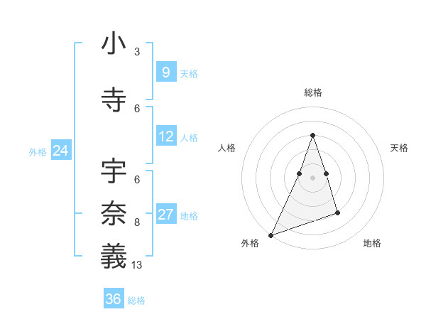 小寺 宇奈義さんの総格は36画の3点!