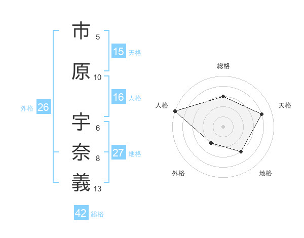 市原 宇奈義さんの総格は42画の3点!