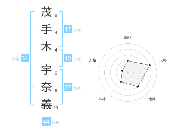 茂手木 宇奈義さんの天格は17画の4点!