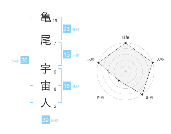 亀尾 宇宙人さんの総格は39画の5点!