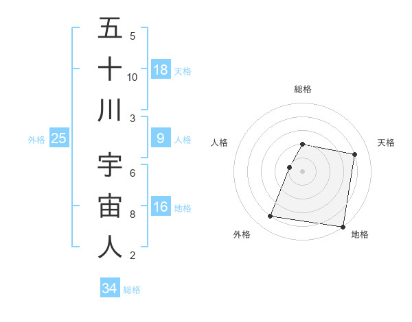 五十川 宇宙人さんを姓名の画数から五運を鑑定