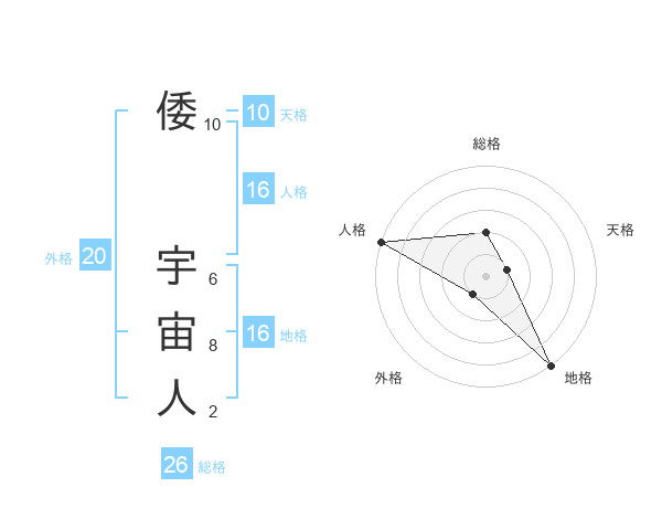 倭 宇宙人さんの総格は26画の2点!