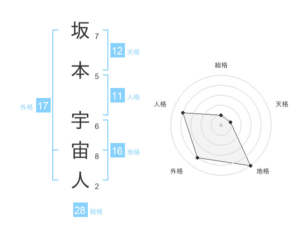 坂本 宇宙人さんを姓名の画数から五運を鑑定