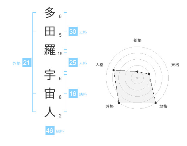 多田羅 宇宙人さんの外格は21画の5点!