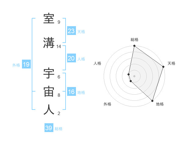 室溝 宇宙人さんを姓名の画数から五運を鑑定